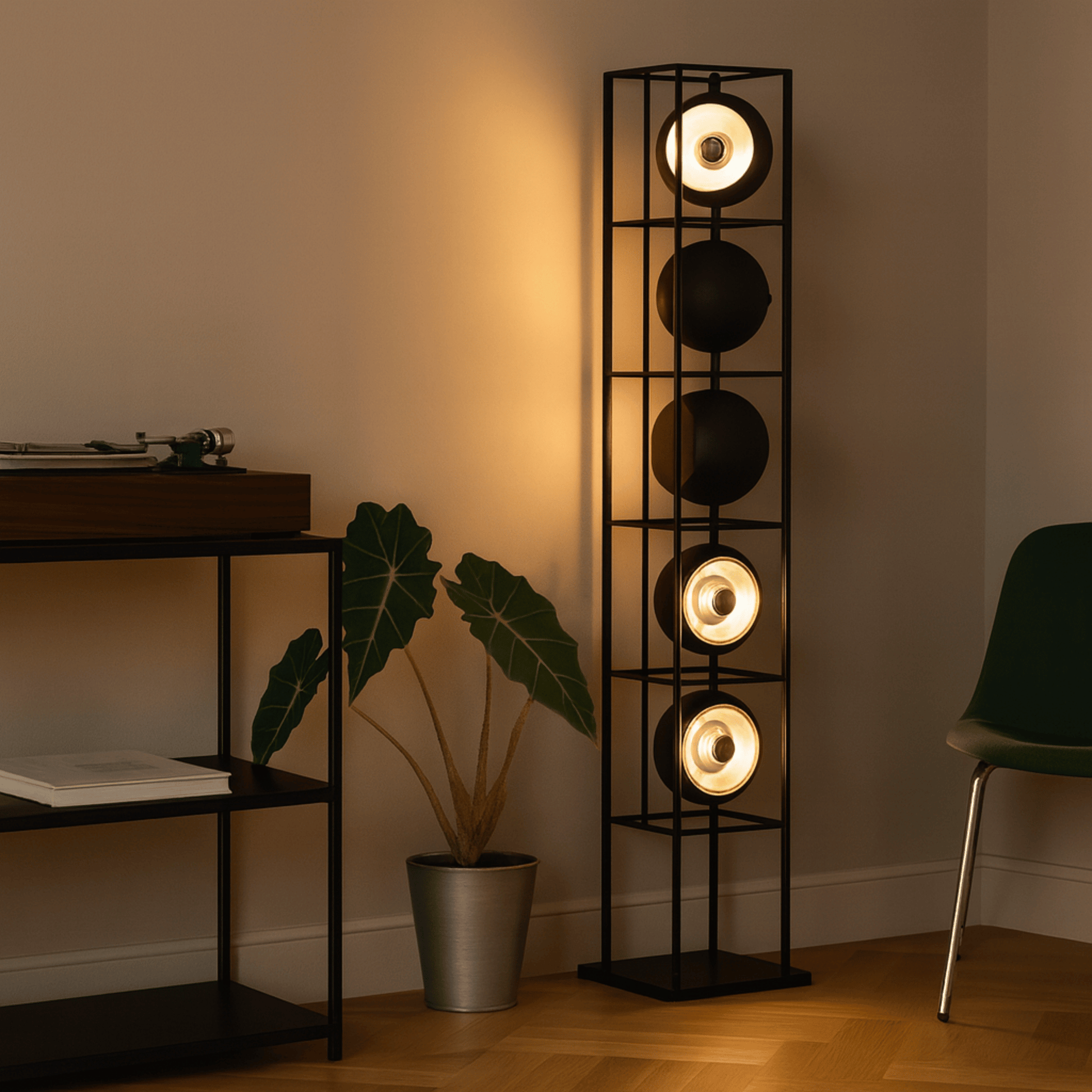 The LumeForm Bauhaus Floor Lamp transforms light into sculpture — an interplay of geometry, metal, and glow. Inspired by Bauhaus modernism, its twin LED spheres are framed within a precise metal structure that feels architectural yet warm. Available in polished chrome or matte black, it’s a striking accent that redefines lighting as art.